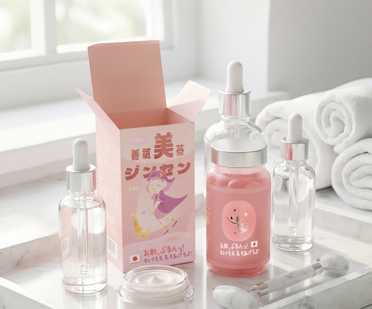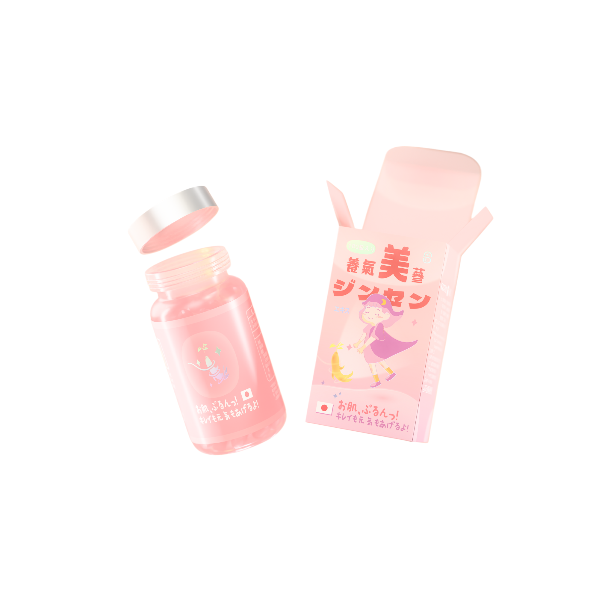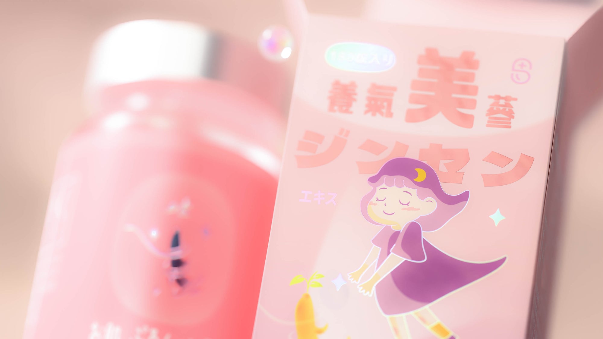 養氣美蔘 Oxygen Ginseng在人蔘相關保健品中,視覺語彙往往偏向厚重與沈穩。本專案旨在挑戰這一既定印象,為主打女性市場的「養氣美蔘」補給品打造全新的視覺識別系統。我們側重人蔘的天然生命力與現代科技的精準感,將其轉化為柔和的粉色光譜與通透的材質語言。
